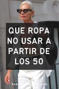 La elección de la ropa es una decisión personal y no hay reglas estrictas sobre lo que se debe o no se debe usar a partir de los 50 años. Sin embargo, algunas personas pueden preferir ciertos estilos o prendas que les hagan sentir más cómodas y adecuadas para su edad y estilo de vida. Aquí hay algunas sugerencias generales que algunas personas pueden tener en cuenta: